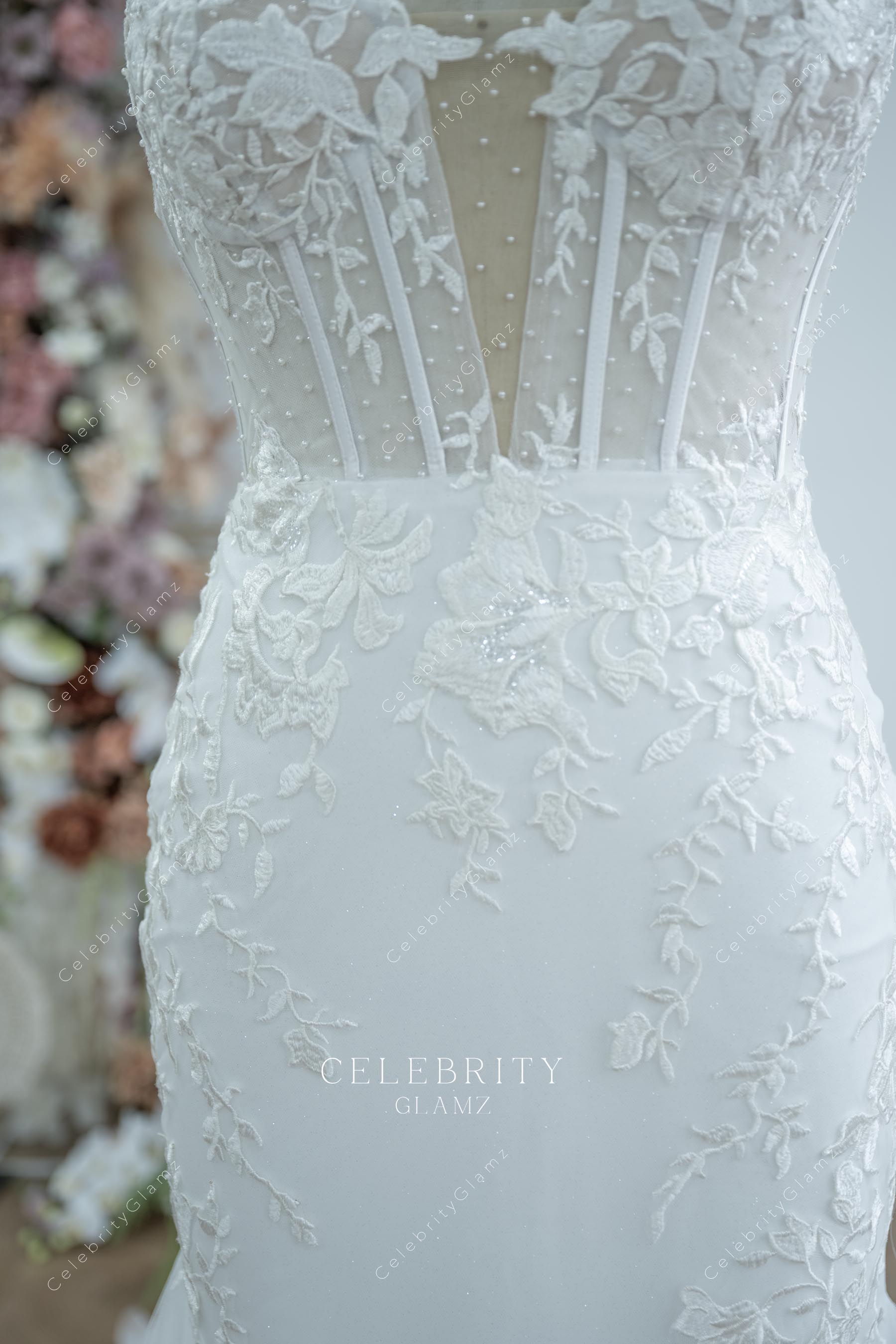 Beaded Lace Sweetheart Neck Mermaid Wedding Dress