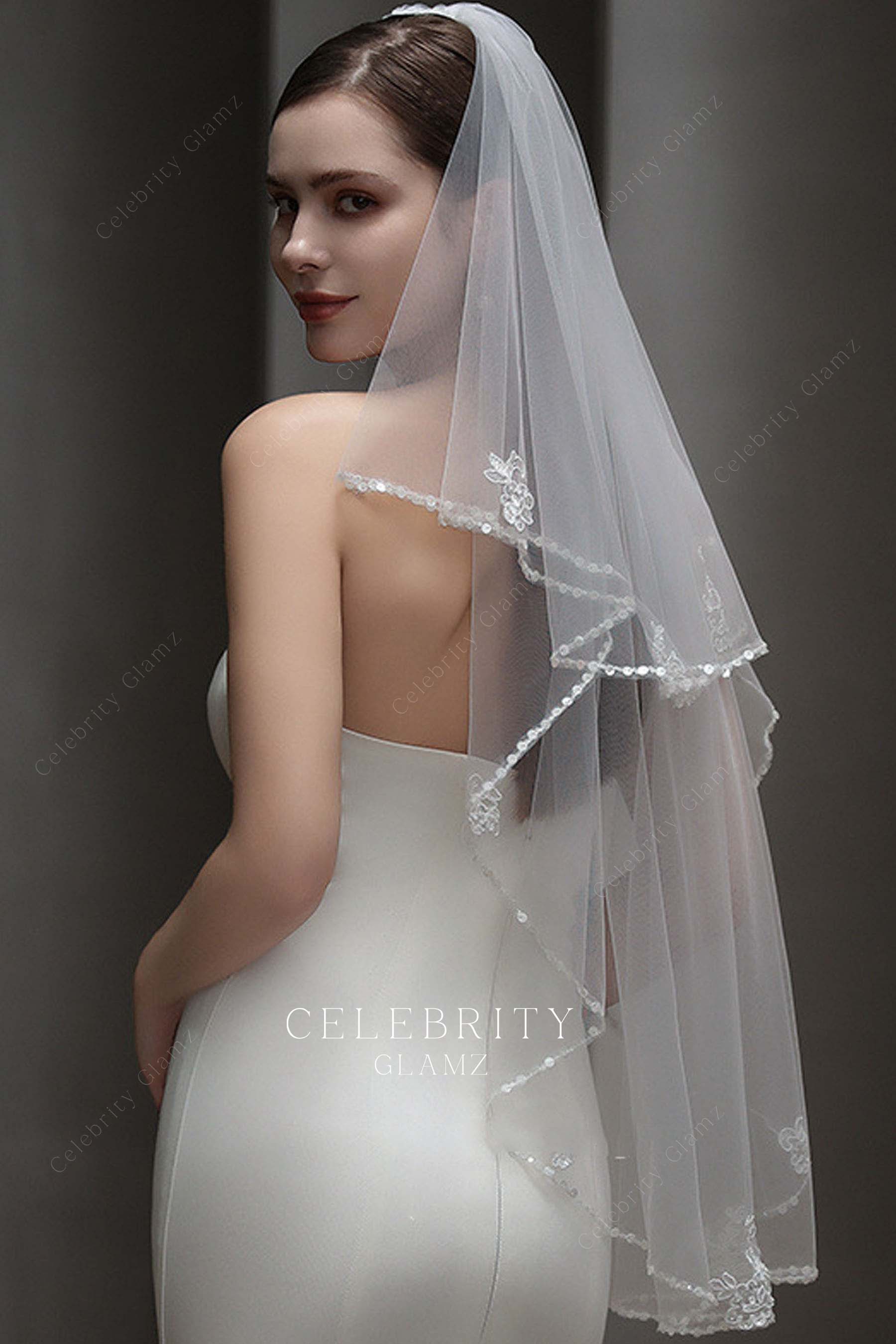 Two-Tier Sequin Lace Tulle Fingertip Length Bridal Veil